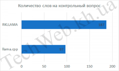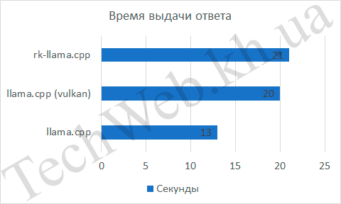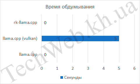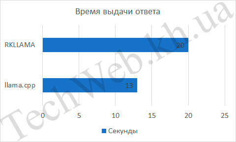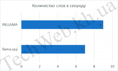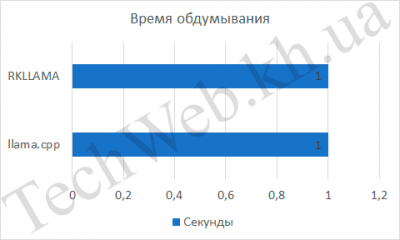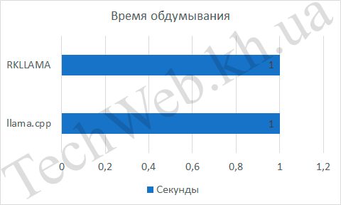Если время обдумывания одинаковое, то количество слов в минуту было разное. Для llama.cpp это составило 7 слов/с, а для RKLLAMA – 9 слов/с. Разница составила итого 29% процентов. Хорошая разница, но хотелось бы большего.