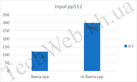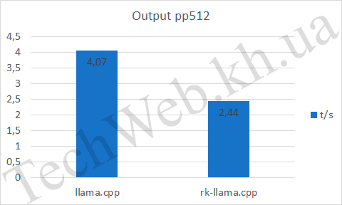 Если говорить про pp512, то видим, что RKNPU, на входе быстрее почти в 3 раза (и это, при неполной нагрузке NPU). А на выходе уступает уже процессору. Также он уступает в tg128 по всем параметрам.